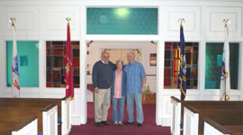 removed windows. L-R: Pastor Jim McKINNEY, Kay McKINNEY, Bob WILLIAMS of Christians United Church.