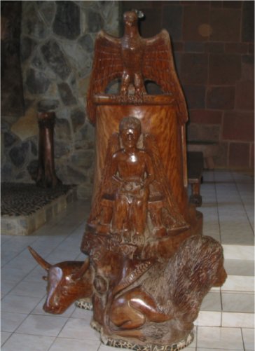 Some way he worked animals and trees into his scheme. All the statues